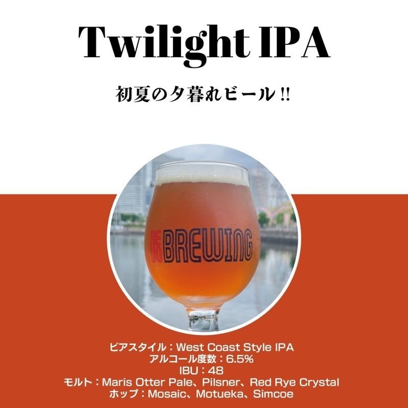 Twilight(たそがれ)の名にふさわしく、一日の終わりや雨の止んだ静かな時間に、ゆっくりと味わいたいIPAです。