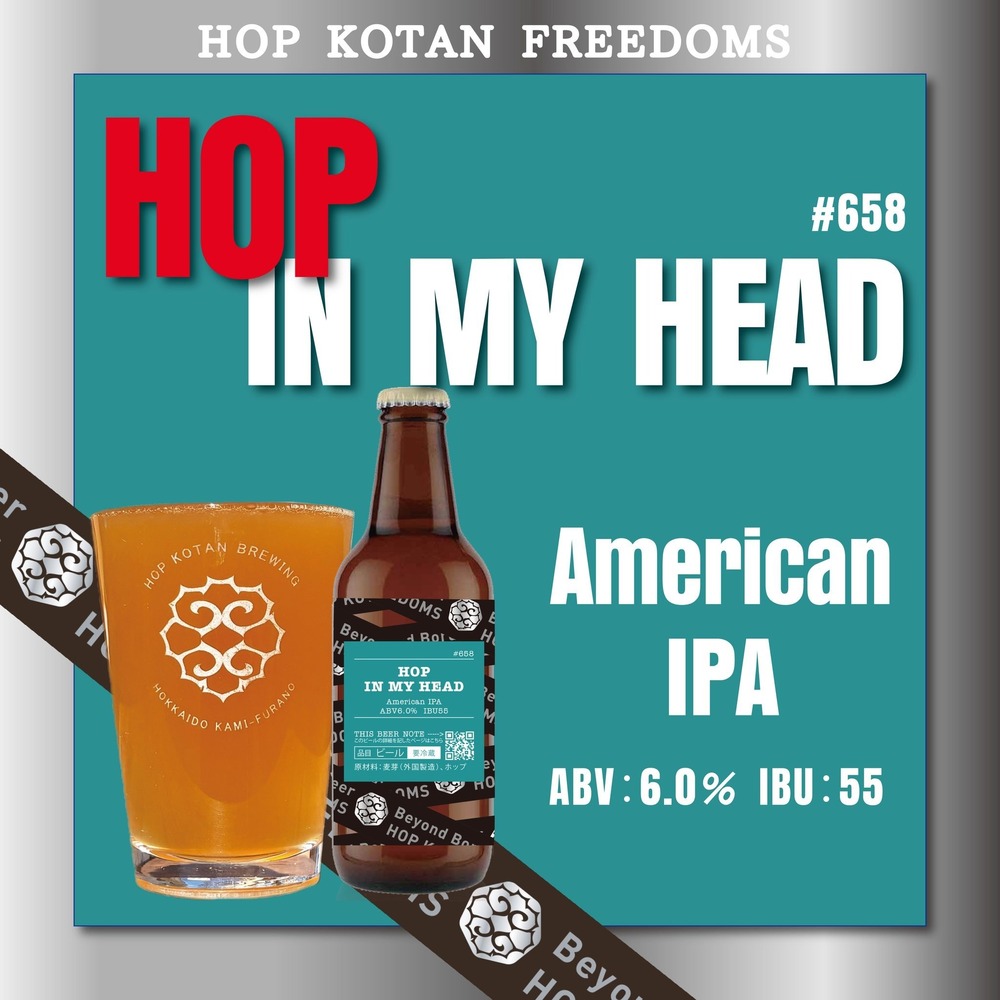 「HOP IN MY HEAD」という名前は、ナンバーガールの曲名から。頭の中に鳴り続けるのは、好きなホップたちの断片的な記憶。それらを集めたような一杯です。