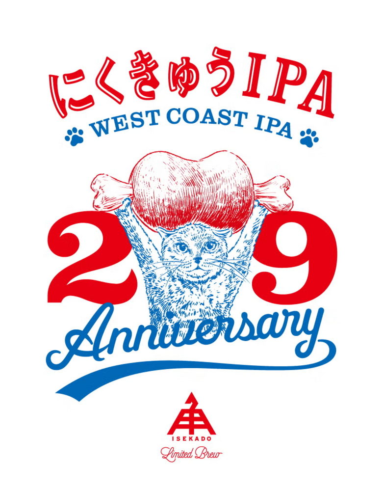おかげさまでISEKADO は29周年を迎えることができました。ご愛顧いただいている皆さま、本当にありがとうございます。日頃の感謝の気持ちを込めて、本年も29周年ビールを醸造しました。本年は29(にく) の年ということで、お肉料理に合うドライなウエストコーストスタイルのIPA です。