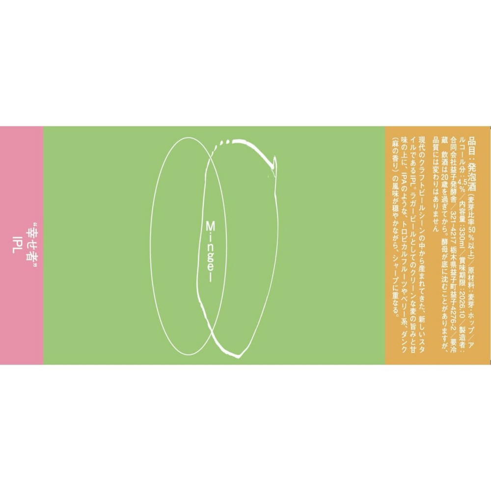 Mingel Farmhouse beer & bread / ミンゲル ファームハウスビア&ブレッド| スタイル | ラガー - IPL (Indian Pale Lager) / インディアンペールラガー |